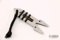"Made of Crucible's CPM154 premium cutlery steel, this compact mini wrench tool will turn six standard bolt sizes 1/4" through 9/16". Also features multiple screwdriver/pry tips, and 1/4" hex driver bit with hex bit holder and O-ring retention system." Tumble Finish. Excellent Condition.