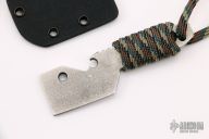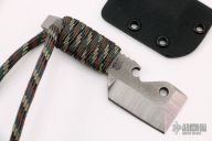This Compact Prymera by JDR Knife and tool features a chisel ground blade with .149" blade stock and 1" blade depth, 1.019" blade depth. Includes bottle opener, flat screwdriver/pry surface, and notched thumbrest. Paracord wrapped handle. Includes a kydex sheath. Excellent condition.