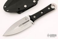 This SBD by Microtech Knives and Borka Blades features a stonewash finished double-edged blade with .188" blade stock and 1.556" blade depth, full tang construction with black G-10 scales. Comes with the original kydex sheath, box and papers, dated 12/2021 s/n 1491. Excellent Condition.