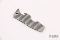 This Mahi-Mahi keychain tool is handmade from Damascus. Notched thumbrest, bottle opener, prytools. Finger choil. Excellent condition.