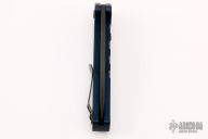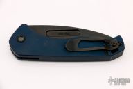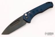 The Swift Auto by Medford Knives features a PVD coated drop point tanto blade with large fullers. The handle has a blue tumbled aluminum and features a lanyard hole in the pommel and a titanium tip up pocket. Includes original zippered case and box. Excellent Condition.