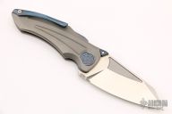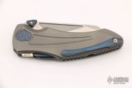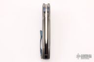 Our goal was to lighten this beast while keeping it amazingly strong, so we 3D-machined it inside and out.  This is our first button lock flipper! (And what a challenge it was to pull off!)  And finally, we added a little “bling” by anodizing the thumb studs, pocket clip, and backspacer either Bronze or Blue – very subtle and muted colors that set off the look of the knife in a way we haven’t tried before!