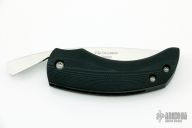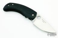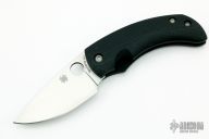This friction folder by Spyderco knives features a satin finished blade with a thumbhole. The handle features a black G-10 frame. Includes the original box and papers. Excellent condition.