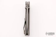 This MAC2 features a stonewashed drop point Magnacut blade with dual thumbstuds and a notched thumbrest. The handle features a stonewashed titanium frame with a matching tip up pocket clip. New from Maker!