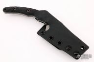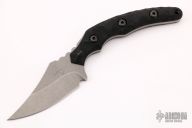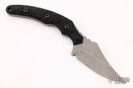 This Talonby Tactical Pterodactyl features a sheepsfoot Magnacut blade with a notched thumbrest, .151" blade stock and 1.216" blade depth, full tang construction. The handle has black G-10 scales. Comes with a kydex sheath and COA. Excellent condition.