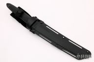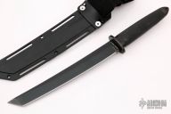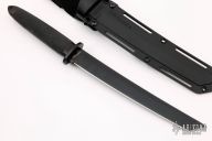 This 3V Magnum Tanto IX by Cold Steel features a black tanto style blade with .185" blade stock and 1.096" blade depth. The handle is comprised of a black steel guard and pommel with a textured rubber grip over hidden tang construction. Includes leather sheath with belt loop and original box. Excellent condition.