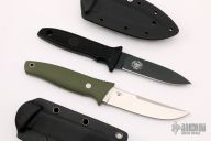 This M-10 by Gryphon Knives is a Bob Terzuola design, it has a VG-10 San Mai black spear point blade with notched thumbrest, .172" blade stock and .886" blade depth, hidden tang construction. The handle has a black FRN grip with lanyard hole. Comes with kydex sheath with belt clip. Excellent condition.