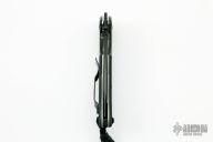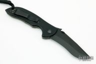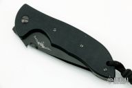Here's a piece of history - a third year Emerson Commander. Emerson Knives was formed in 1998 and the Commander evolved from Ernie's SpecWar work on the ES1 for the military. "The Emerson Commander is the winner of the "Best Overall Knife of the Year" at the International Blade Show in Atlanta, GA. The Blade Show is the world's largest cutlery showcase and is the cutlery industry's premier event. This award is judged by fellow manufacturers and is the highest honor and most sought after award in the cutlery industry." "The Emerson Commander is a 21st century combination of design, materials, performance, and razor sharpness. This knife along with other Emerson Knives, sets the new standard for the cutlery industry and continues to push the design and performance envelope for cutting tools well into the 21st century." "The Commander knife-battle tested and proven-incorporates some of the most advanced ergonomics ever featured on a folding knife. The knife, already in use with elite armed forces, European Military strike teams and NATO Counter-Terrorist units throughout the world was chosen by the U.S. Navy SEAL teams for issue to special units within the Naval Special Forces Units. Because of its ruggedness, it has become a favorite of hunters, outdoorsmen and adventurers the world over. It features the patented "wave shaped opening feature" with Dragon's Teeth™ serrations." This production Commander linerlock folder has a plain edge black blade and G-10 handle with titanium liners. Wave feature was first used on the Commander. Has a little wear on the blade finish and a little bit of vertical play, otherwise excellent condition. Comes with a zippered case.