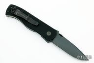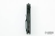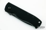 This CQC-7A by Emerson Knives has a black blade with notched thumbrest and a thumbdisc. The handle has black G-10 scales, titanium liners, black barrel spacers, tip up black stainless steel clip. #2925. Comes with original box and papers. Excellent condition. Comes with an extra pocket clip and a full set of hardware.