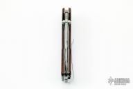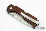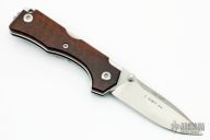 This folder from Fantoni Knives features a drop point, tumble finish blade with dual thumb studs, notched thumbrest. The handle is comprised of snakewood scales over stainless steel liners and backspacer. Tip up clip. Comes with original box. Excellent condition.