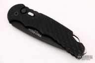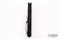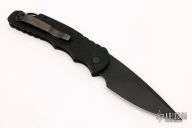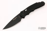 This Tactical Response TR-4.F3 features a black anodized aluminum frame with feather texture, which provides good traction and looks great. The blade is black finished 154-CM stainless steel with a plain cutting edge. The TR-4.3 is a knife that won't let you down. It fires hard, locks up like a rock, and feels great in hand. The slim design sits comfortably for tip-up pocket carry. Tritium is inset into the firing button, adding a unique and awesome flare to the piece. Comes with original box and sheath. Has a couple light scuffs, otherwise excellent condition. PR11 s/n 370