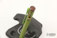 "I am a folder maker. While there will always be the occasional fixed blade, folders are my passion. The steels I enjoy working with include CPM154, ATS-34, 440C, S30V, and Stainless Damascus from Devin Thomas. All of the metal parts on my knives that can be Titanium are Titanium including frames, liners, thumbstuds, bolsters, clips and spacers. Pretty much everything except for the blade. I often anodize a substantial portion of my titanium, and can get a deep green that few makers succeed at. As far as handle materials go, I mostly use Carbon fiber, G10, or Micarta. I use large bronze pivot bushings in all of my folders, and either Nylatron or Bronze washers. All of my parts are made in-house except the screws. I have an old Bridgeport Mill, an older Logan Lathe (1943), a Hardcore grinder, and various other tools, lots of them made by myself. I also do all of my own Heat treating in an EvenHeat Oven." My knives have won several major awards, including Best Tactical Folder at the Blade Show 2011.