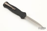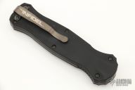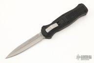 "Introducing an OTF like none-other.. The new Infidel® is rapidly making believers out of many a skeptic. Built for strength and reliability the patent pending double-action mechanics get it done over the long haul. Grab on and you will find the handle grip rock-solid with its patented machined in Presidio® style bi-directional tread pattern, and overall generous sizing for gloved hands. Intuitively pressure the release-slide forward and its spear-point edged steel fires and locks up with a unique three-point retention system with amazingly negligible blade play. Reverse the process and the blade retracts in a rapid blur of motion. The Benchmade Infidel is a special operator’s fantasy come true." Comes with original box, papers, and nylon sheath. Excellent Condition.