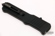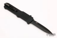 This Incursion has a black handle and a black dagger blade. The Hogue Incursion is a large OTF automatic knife. It is constructed for hardcore tactical use. It has an ergonomic, aluminum handle with grooves to enhance grip. The out-the-front action is swift and reliable. The knife is finished off with a reversible, deep carry pocket clip and a glass breaker tip. 154CM blade holds a good edge and can handle hard use. Textured aluminum handle provides a reliable grip. Deep carry pocket clip and glass breaker. Comes with original box, sheath and papers. Excellent condition.