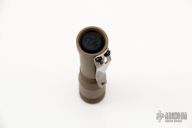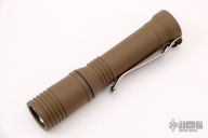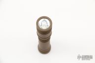 This Ion flashlight from Mitch Lum/Laulima Metal Craft and Joshua Dawson features a cerakote aluminum body. 219C 4000K. Reflector optic. Mineral window. Uses a single 14500 battery. Battery is not included.  This piece comes with a custom pouch and COA, dated 01/25/22.  Excellent Condition.