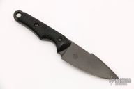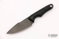 This Silverfish by Dervish knives features a 'granite' finished blade, .138" blade stock and .833" blade depth, full tang construction. The handle has black G10scales.  Includes a leather sheath.  Comes with COA and sticker. Excellent condition.
