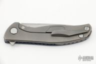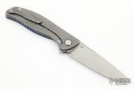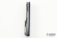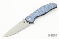 This Hati by Shirogorov Knives features a stonewashed blade with notched thumbrest and flipper. The handle has a blue twill carbon fiber and stonewashed and anodized titanium frame with matching tip up clip and backspacer with lanyard hole. Rides on bearings, nice detent, lockup and blade seating. Comes with original box and papers. Excellent condition.