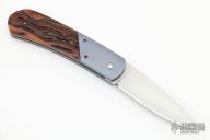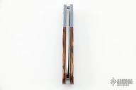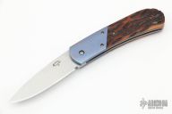 This Gentleman Scale Release Auto has a hand rub satin finished blade. The handle has anodized and orange peel finished titanium bolsters, jigged bone scales, bead blasted titanium liners and a stainless steel backspacer. Has a few light scratches, otherwise excellent condition.
