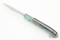 "My first knife was a filet in 1976 made from a sabre saw blade. Progressed to hunting, boot, folders in lockbacks, linerlocks, and finally automatics. Ats-34 is the primary blade steel and some Damascus from various makers. Liners and springs are of titanium and usually anodized. Some file work on blades and most liners. Various handle materials including micartas, circuit-boards, wood, stag, buffalo, ivory, pearl, and oosik." Bill is a charter member of the Florida Knifemakers Association and the local Gator Knife Club. Mentored by Frank Centofante and Mel Pardue in the 1970's.