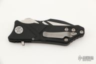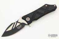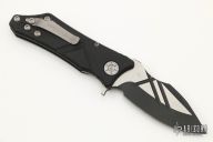 This Exilis flipper by Guardian Tactical features a two-tone blade with satin flats and black grinds, flipper, and notched thumbrest. The handle has a black aluminum frame, stainless steel tip up clip. Nice detent, lockup and blade seating.  Dated 05/2015.  Excellent Condition.