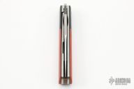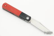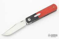 This Barlow Front Flipper Linerlock by Enrique Pena features a hand rub satin finished blade with front flipper and notched thumbrest. The handle has black micarta bolsters, blood orange canvas micarta scales with a stainless steel escutcheon, black liners, titanium liners and natural canvas micarta backspacer. Comes with a zippered case. Excellent condition.
