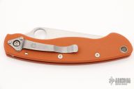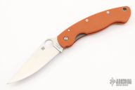 Spyderco Military C36GPBORE - CPM-REX45 Blade - Burnt Orange G-10 Handle The latest in the series, this breathtaking Sprint Run expression of the iconic Military™ Model proudly features CPM® REX® 45 blade steel and textured G-10 scales in the signature burnt orange color of Spyderco’s elite REX 45 family of knives. Crucible® CPM REX 45 is a super-high-speed particle metallurgy tool steel enriched with large volumes of cobalt, tungsten, molybdenum, and vanadium. Its high cobalt content increases the steel's attainable hardness, while its vanadium carbides provide high wear resistance, fine grain size, and increased toughness. In a knife blade, these qualities translate to an exceptionally sharp, long-wearing edge. REX 45 is, however, a true tool steel, so it must be maintained properly to avoid corrosion. REX 45's alloy composition is equivalent to Hatachi’s HAP40—a favorite among Spyderco steel enthusiasts. The handle scales of this remarkable expression of the Military Model therefore feature the same burnt orange handle color as our highly coveted Japanese-made HAP40 Sprint Runs. All other features of this knife are consistent with the time-tested Military design, including its LinerLock mechanism and right-side, tip-down carry clip. Specs: Category End Use: EDC/Collector Blade Steel: CPM-REX45 Blade Grind: FFG (full flat grind) Blade Length: 4.06" (103 mm) Length Open: 9.58" (243 mm) Length Closed: 5.52" (140 mm) Blade Thickness: .145" (3.7 mm) Hole Diameter: .5" (13 mm) Lock Type: LinerLock Handle Material: Burnt Orange G-10 Tip Carry: Tip-Down Clip Position: Right Hand Weight: 4.3 oz. (122 g) Made In: U.S.A. Excellent condition.