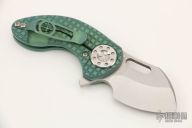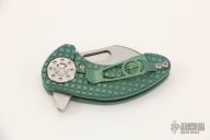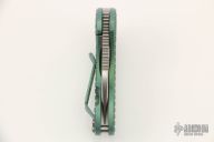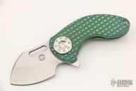 This Nano Framelock Flipper by Dave of Curtiss Knives features a tumble finished drop point blade with swedge, thumb hole, notched thumb rest and flipper. The handle is comprised of a frag pattern titanium frame with steel lockface insert over a single barrel spacers. The machined titanium pocket clip is positioned for right hand, tip up carry. Includes a padded zippered case, extra pivot and pivot tool. Light scratches are visible on the clip otherwise the knife is in excellent condition.