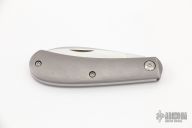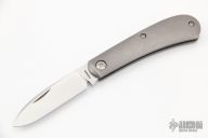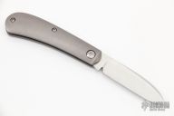This Zulu by Enrique Pena features a hand rub satin finished blade with nail nick. The handle has stonewash, bead blast finished titanium covers with a stainless steel backspacer. Has halfstop, flush in all positions. Comes with a zippered case. Has a couple light scratches, otherwise excellent condition.