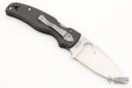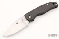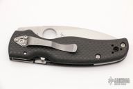 This Shaman Pin by Spyderco features a satin finished spear point blade with notched thumb and finger rests, thumbhole. The handle has carbon fiber scales, inlaid stainless steel liners and a satin finished stainless steel backspacer, 4-way reversible stainless steel clip, lanyard hole at the butt.  Excellent condition.