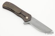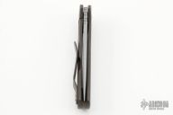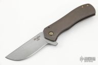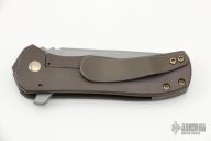 This Recon flipper features a tumbled blade with notched thumbrest and a flipper. The handle has an anodized and tumbled titanium frame and pocket clip is positioned for tip up carry. Nice blade seating, detent and lockup. Flips well. Has some light scuffs, otherwise excellent condition.