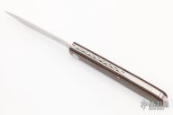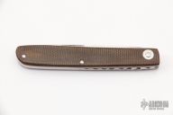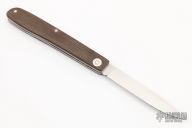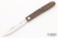 This OLF SS FK by Ohta Knives features a satin finished blade with nail nick. The handle has micarta covers, stainless steel liners, and a fileworked stainless steel spring. Comes with a zipper case. Has some light scuffs otherwise excellent condition.