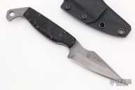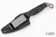 This Gulo Gulo by Half Face Blades features a bead blade with sharpened top edge, .161" blade stock and .880" blade depth, full tang construction.  The handle has rubber scales. Comes with a kydex sheath with belt clip. Light sheathing marks are visible on the blade otherwise the knife is in Excellent condition.