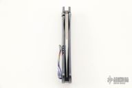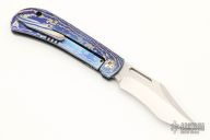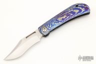 This Rebel Framelock by Jim Burke features a hand rub satin finished recurve blade with swedge and thumb hole. The handle is comprised of a full mokuti frame with a matching tip up clip, clip screws are hidden, anodized and machined titanium backspacer. Comes with COA and a Velcro case. Excellent condition.