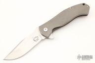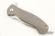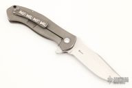 These Deluge flippers are a designed by D.B. Fraley and produced by Reate Knives. The hand ground blades feature a hand rubbed, satin finish. The handle is crafted from bead blasted titanium. The backspacer and pocket clip are also titanium and feature Fraley's "Lost Souls" pattern. Pocket clip is positioned for tip up carry. Blades are centered when closed, knives flip well with no wrist action needed, and have nice crisp detent. Comes in a padded/zippered case. Has a few scratches/scuffs, otherwise excellent condition.