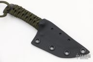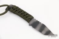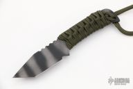 This knife by Strider Knives features a tiger striped blade with notched thumbrest, paracord wrap, .077" blade stock and .896" blade depth, full tang construction with cord wrapped handle. Comes with kydex sheath. Excellent condition. Comes with a cloth pouch.