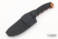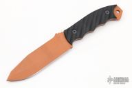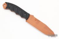 This Disaster Breacher by Half Face Blades features a copper cerakote blade with notched thumbrest and full tang construction, .160" Blade Stock.  1.366" Blade Depth.  The handle is composed of contoured black G-10 scales. Comes with a kydex sheath and original box. Excellent condition.