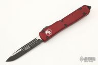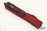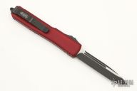 This Ultratech OTF automatic by Microtech Knives features a two-tone black and satin blade with a standard edge. Merlot anodize finish aluminum handle with black hardware and stainless steel clip. Glass breaker. S/N 197818 and dated 04/2021. Comes with oritinal box and papers. Excellent condition.