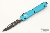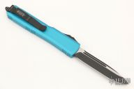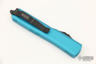 This Ultratech OTF automatic features a S/E black coated blade with a standard edge. Turquoise aluminum frame with stainless steel clip. Glass breaker. Serial number 196964 and dated 04/2021. Comes with original box and papers. Excellent condition.