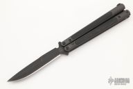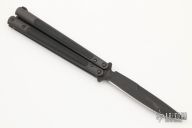 This Model 42-01 Balisong by Benchmade features a black boron carbide spear point blade with swedge. The handles are black aluminum with black G-10 inlays with spring T latch on pommel. Marked "Prototype" on blade. Includes original box and papers, and zipper case. A rare and hard to find piece. Excellent condition.