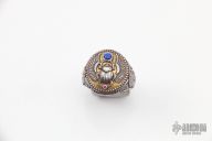 .925 Sterling Silver Scarab/Pharoah Ring - Size 12. Has two citrine stones set into the band of the ring, lapis inlay in the front. Comes with a jewelry box. Excellent condition. Incredible details in this ring.