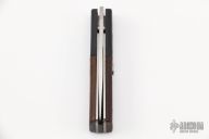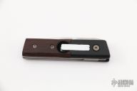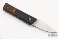 This is a small auto with satin blade of just 1 7/8" that may be legal in California.The handle features plastic bolsters with wood scales over steel liners.  Plastic backspacer. Strong opening action with trigger lever.  Model SW1230. Scratches are visible on the blade and handle otherwise the knife is in good condition.