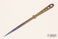 This is an anodized titanium spike dagger with orange peel finish, edges are not sharpened, but it is very pointy, .100" blade stock and .225" blade depth. Excellent condition.