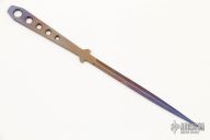 This is an anodized titanium spike dagger with orange peel finish, edges are not sharpened, but it is very pointy, .100" blade stock and .225" blade depth. Excellent condition.