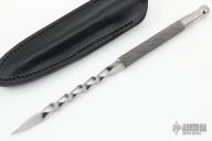 This Twisted Devil Dart has a high polish finish and knurled handle. Great look and feel. Comes with a black leather sheath with clip. Excellent condition.