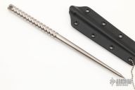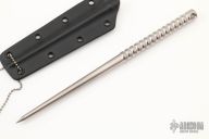 Titanium Spike by Laci Szabo. 9.25" overall length. Comes with a kydex neck sheath. Excellent condition.