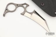 This Collaboration between Alan Folts and Otha Matthews features a multi ground satin finished blade with bead blasted flats and handle, .215" blade stock and 1.259" blade depth, full tang construction. Comes with a kydex sheath. Has some light scuffs/scratches, otherwise excellent condition. This one is #3