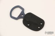 "This is a very small easy to carry little knife that can open a box, a letter and a bottle. When gripped in the palm of the handle and the blade sticking out between your fingers it is a very formidable defense tool." Anodized titanium. Excellent condition. Comes with a kydex sheath.