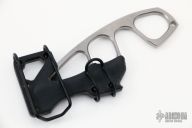 Slim, light, strong, and very sharp. Unique design with skeletonized blade and handle and chisel grind blade. Blade .164" thick and 1.475" deep. Comes with versatile Kydex/G-10 sheath. Has some scratches, otherwise excellent condition.