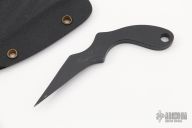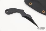 The Baby UUK is one of Laci Szabo's Neck Babies made by Black Cloud Knives, it has a black chisel ground blade with a double edge, .249" blade stock and .565" blade depth, integral construction. Kydex neck sheath. Has a couple scuffs, otherwise excellent condition.