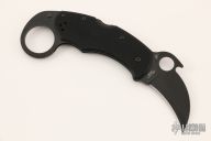 This Karahawk by Spyderco features a black hawkbill blade with thumbhole and wave feature. The handle has black G-10 scales with stainless steel liners and backspacer, tip up black stainless clip, left or right reversible. Comes with original box and papers. Excellent condition.
